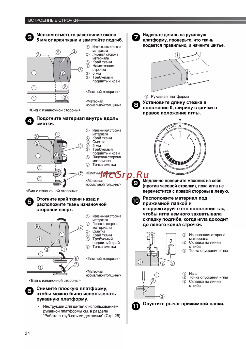 Узнайте, как правильно использовать рукавную платформу для шитья. Следуйте пошаговым инструкциям по подгибке и настройке машины для идеальных швов.