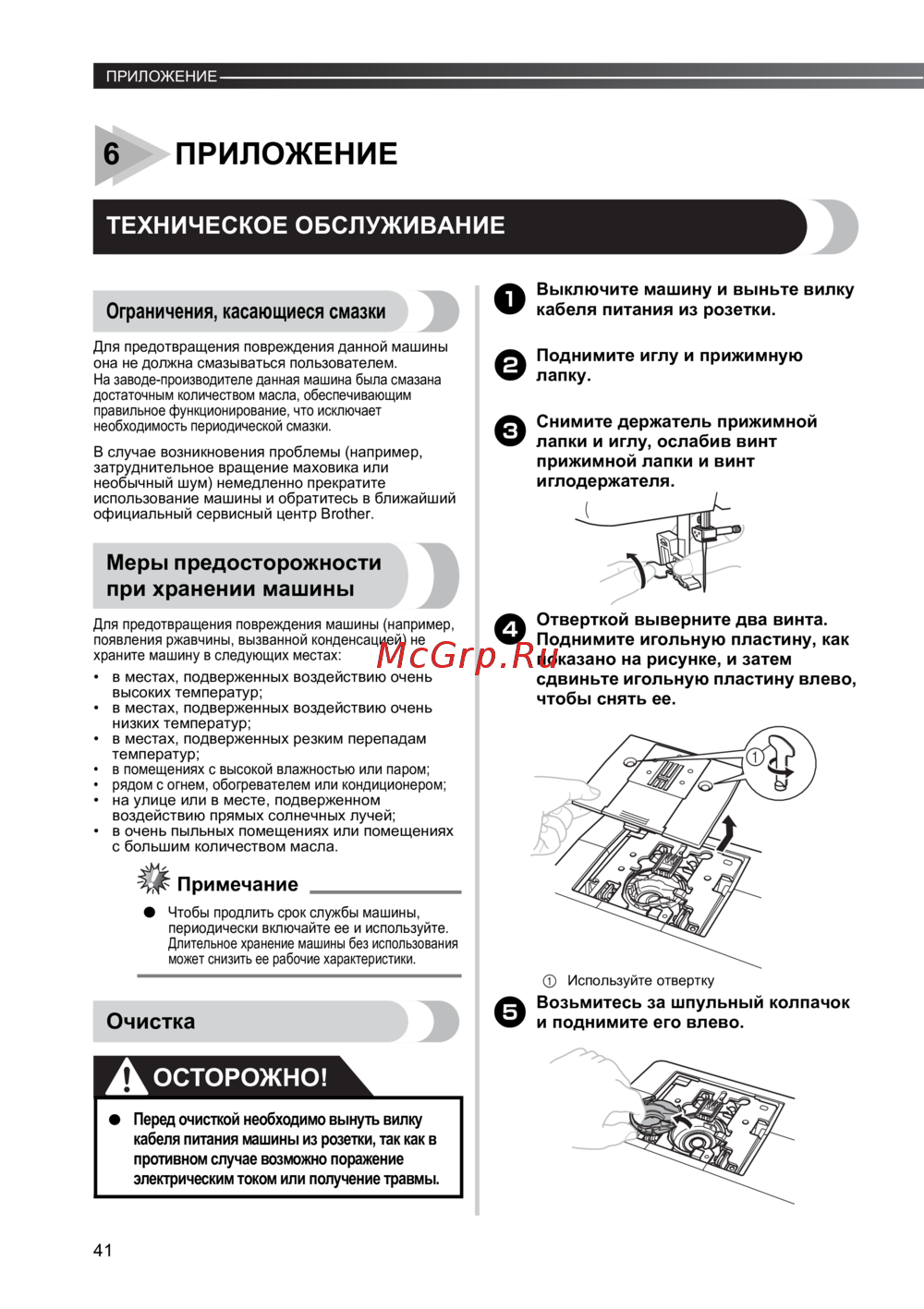 Brother X 4 — техническое обслуживание и меры предосторожности для машин [42/48]