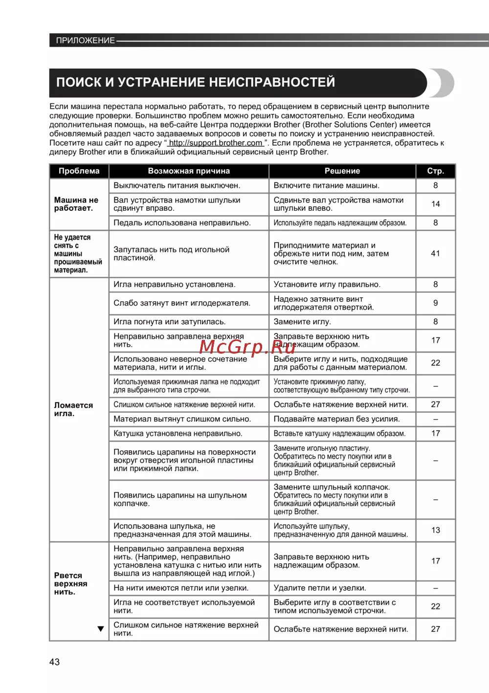 Brother X 4 — поиск и устранение неисправностей в швейных машинах [44/48]