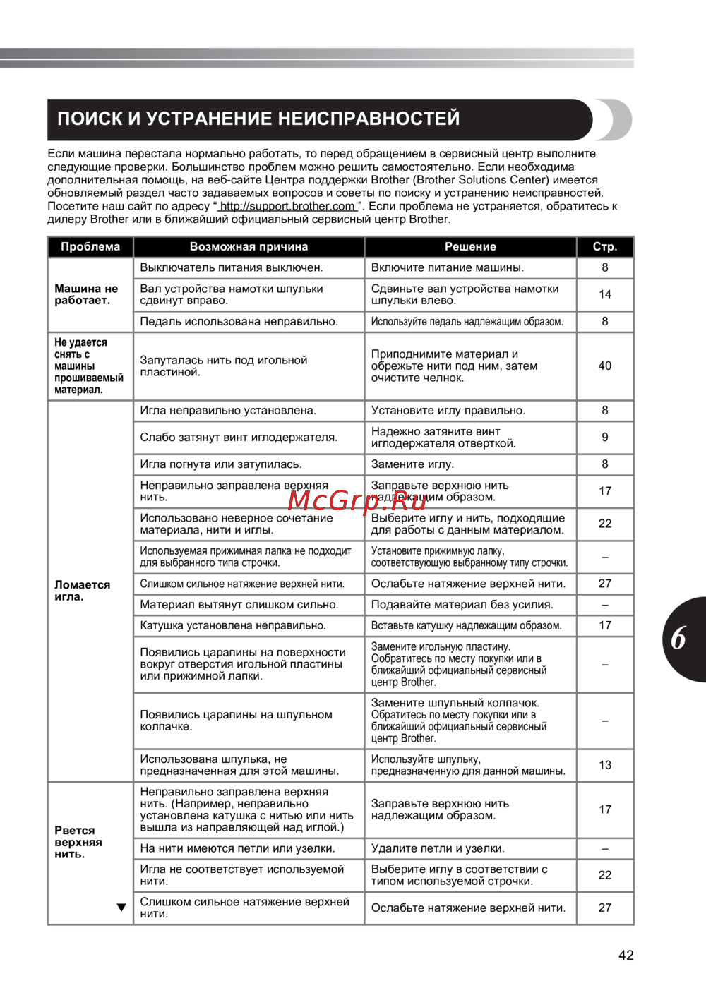 Brother X 8 [43/48] Поиск и устранение неисправностей