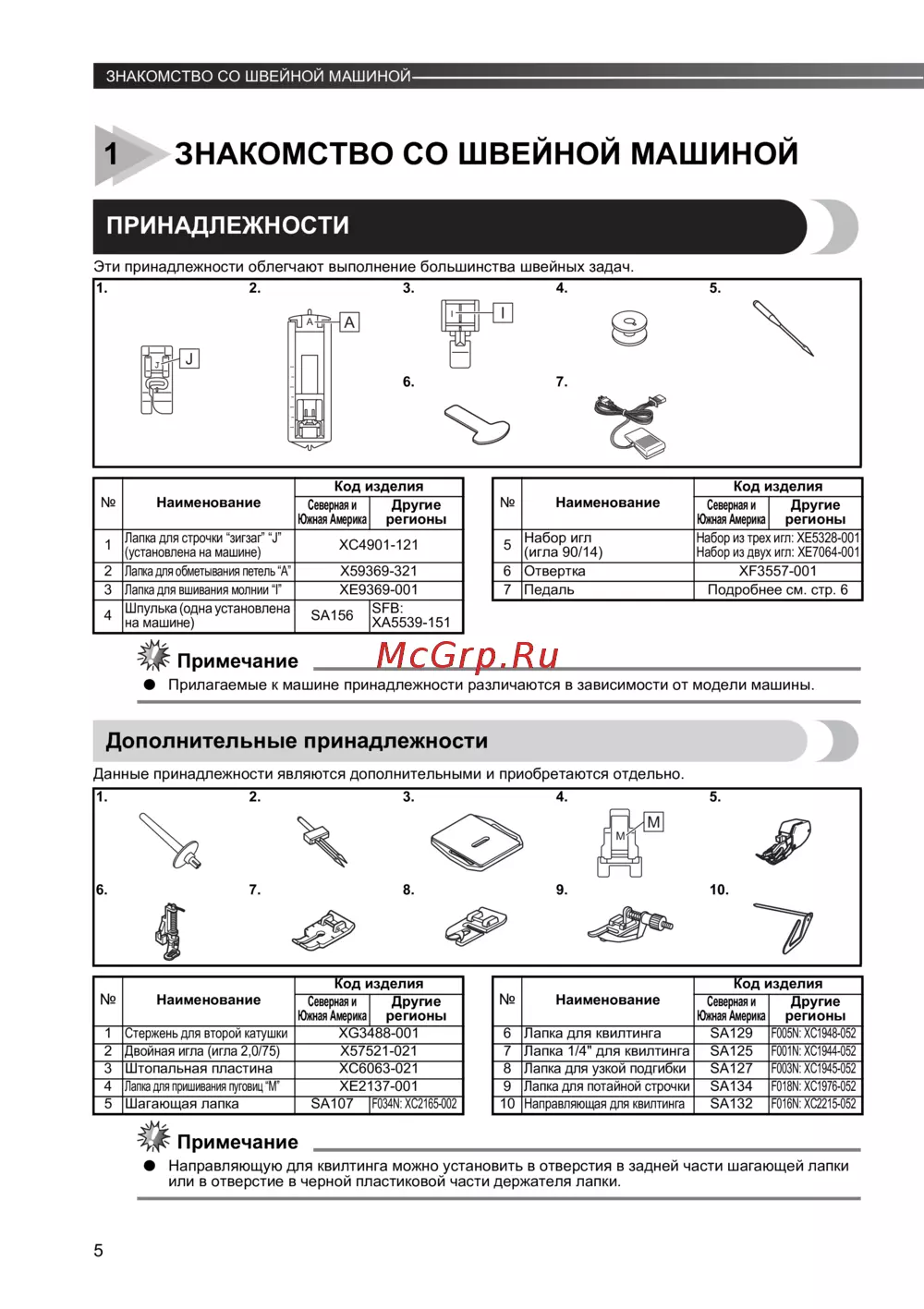 ● Прилагаемые к машине принадлежности различаются в зависимости от модели машины.