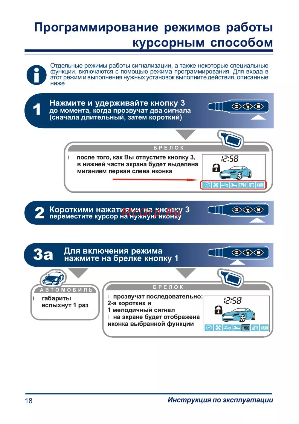 - Команды выбираемые курсором брелка с жк дисплеем p.71