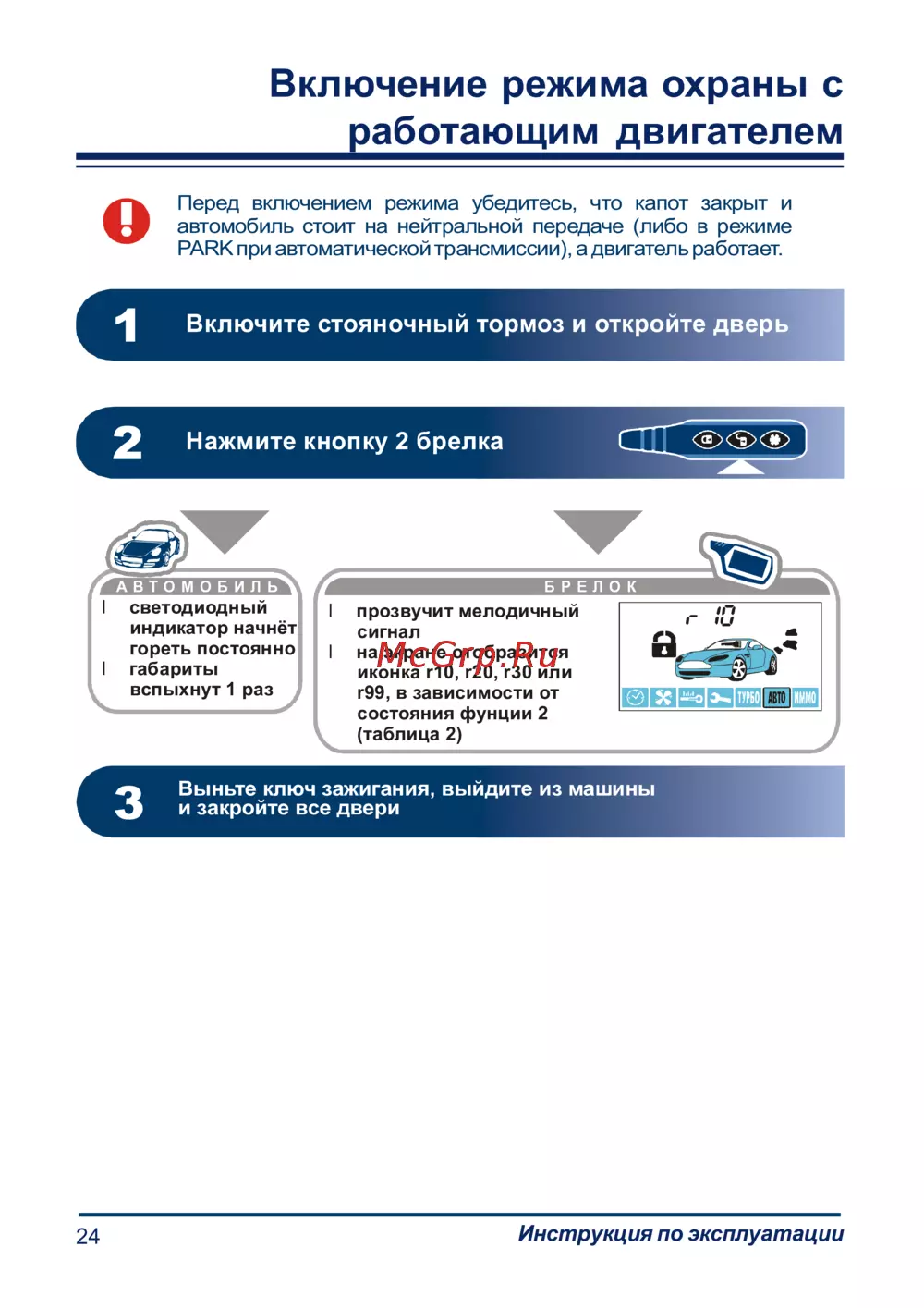 - Для выключения режима нажмите на брелке кнопку 2 p.19
