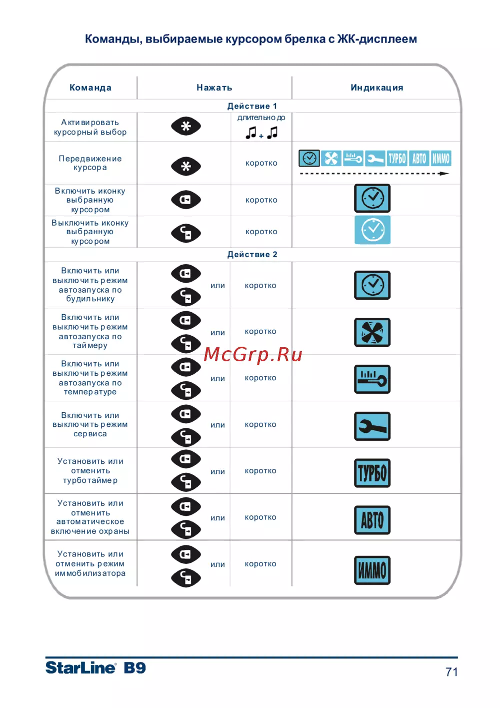 Starline B9 Dialog [71/73] Команды выбираемые курсором брелка с жк дисплеем