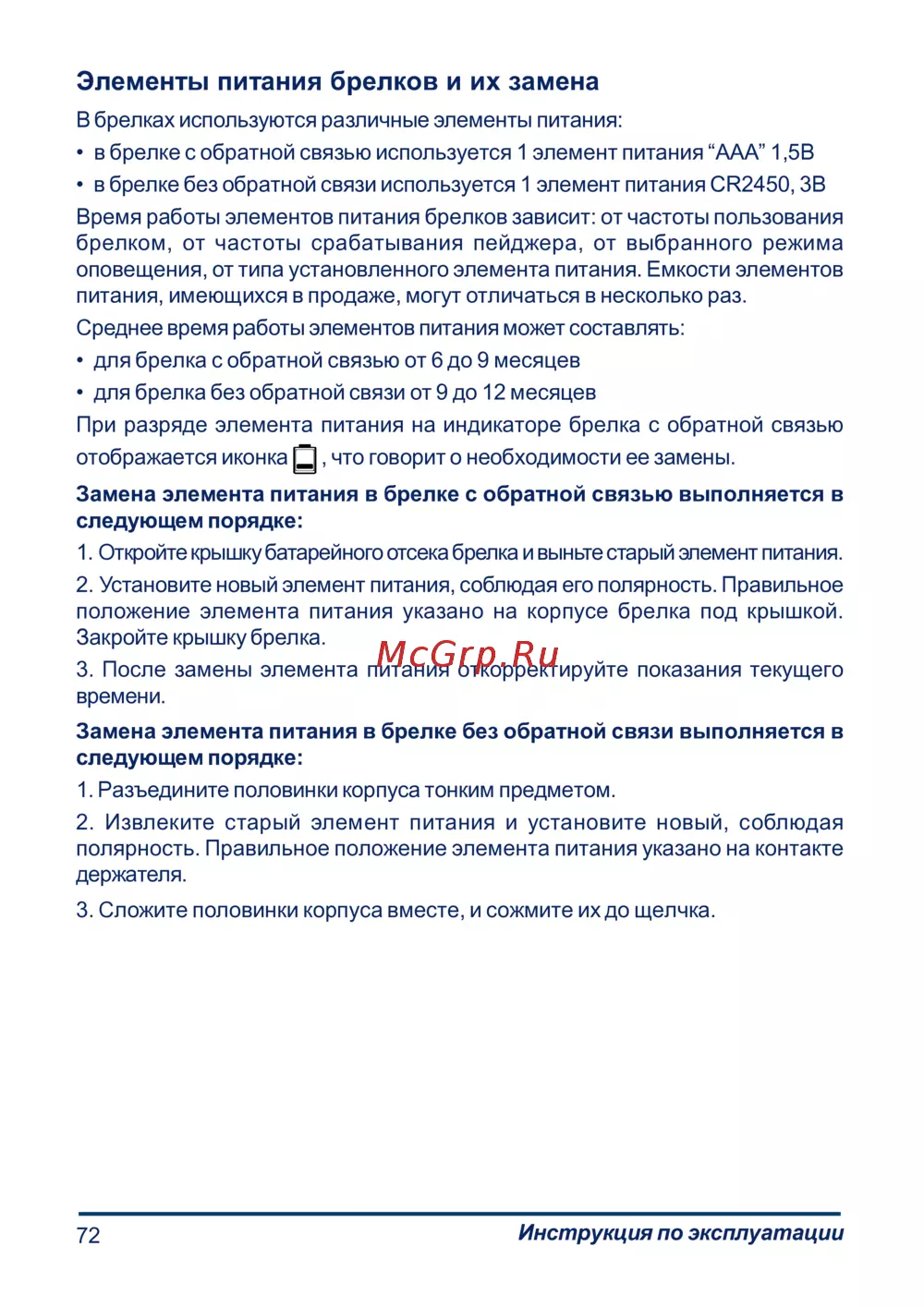 Starline B9 Dialog — инструкция по замене элементов питания в брелках [72/73]