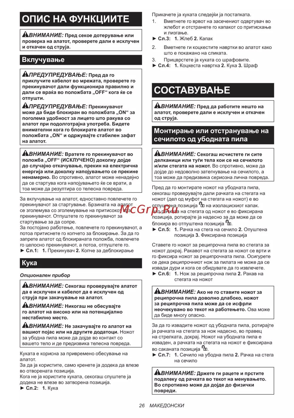 - Правила техники безопасности при эксплуатации сабельной пилы p.41