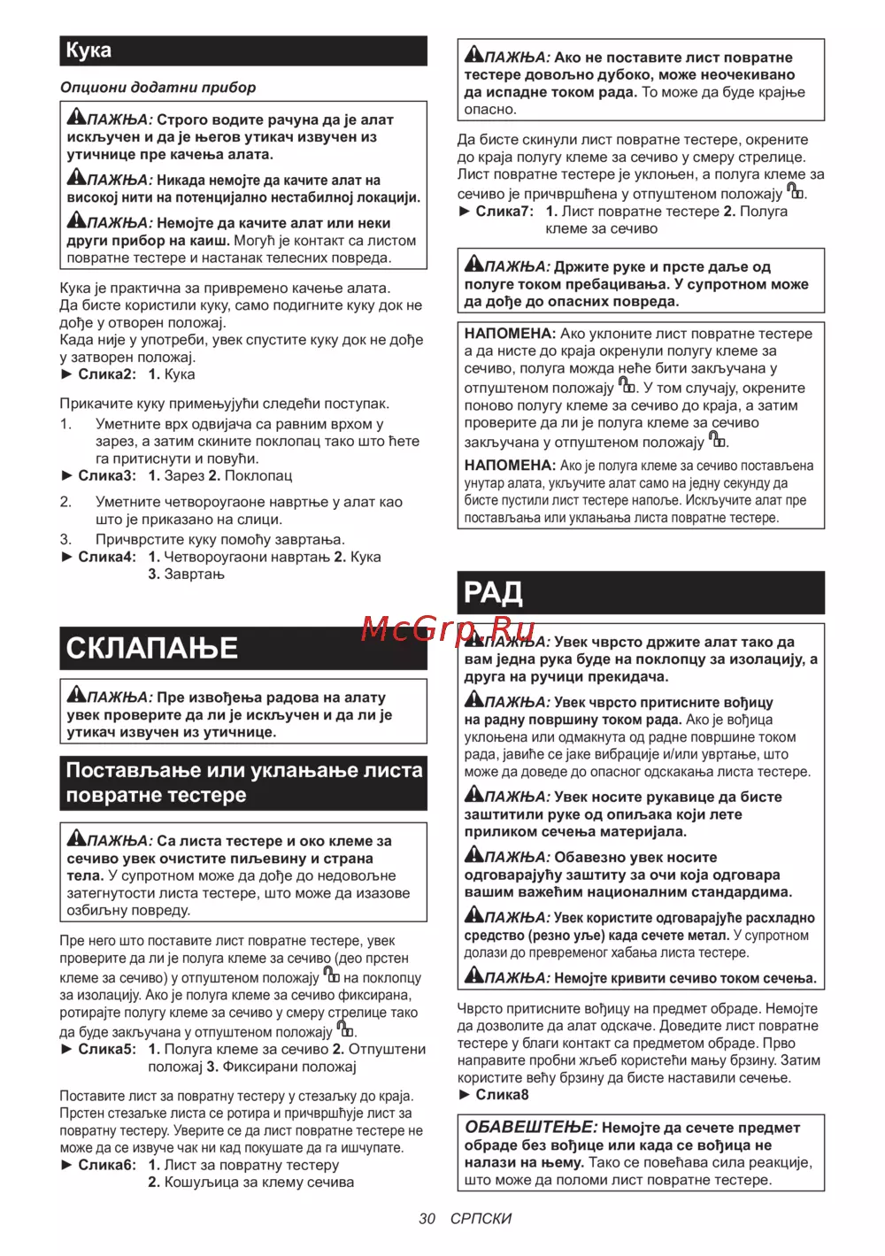Makita JR3051TK — sigurnosne upute za korišćenje kuka i povratne testere [30/44]