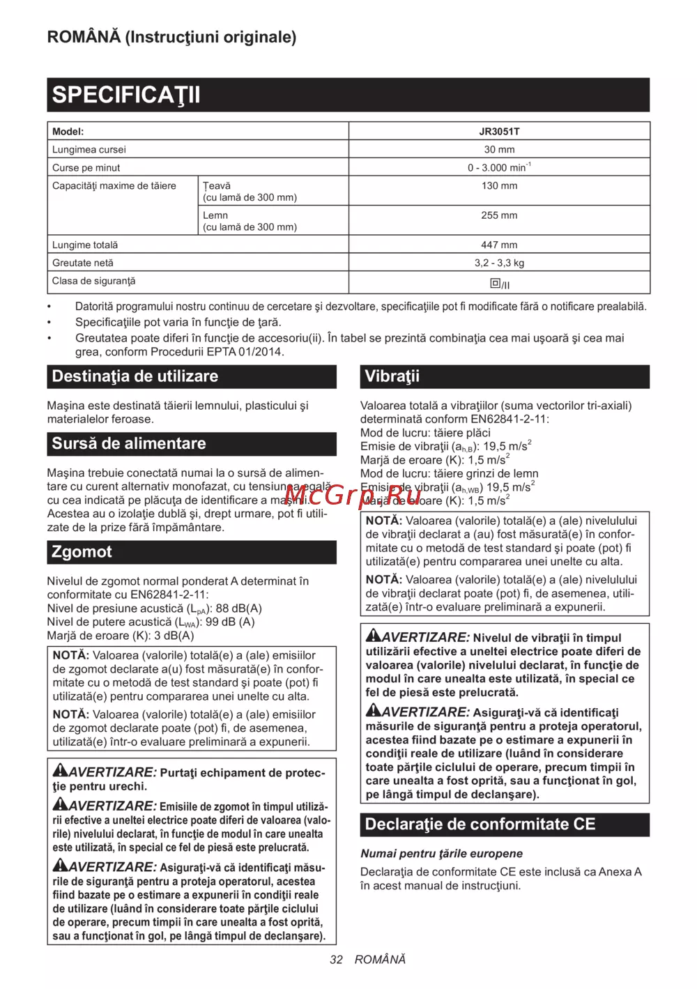![Makita JR3051TK [32/44] Specificaţii](/views2/1772528/page32/bg20.png)