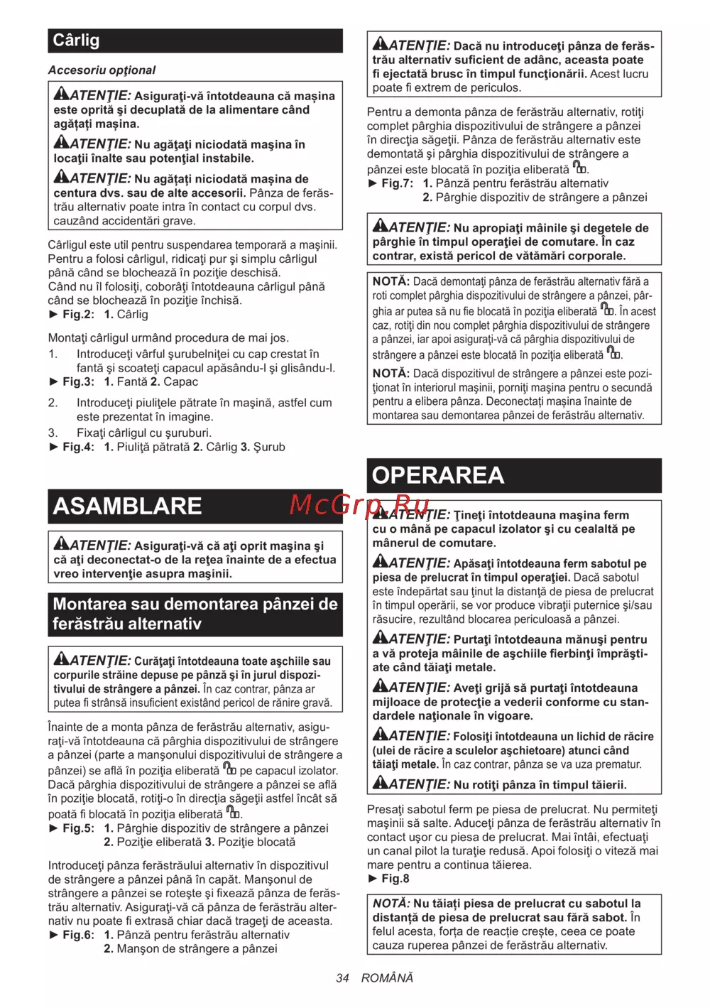 - Montarea sau demontarea pânzei de ferăstrău alternativ p.34