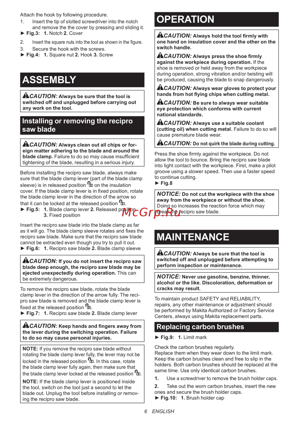 - Правила техники безопасности при эксплуатации сабельной пилы p.41