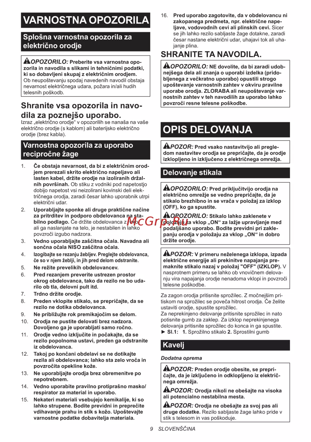 Makita JR3051TK — varnostna opozorila za uporabo električnega orodja [9/44]