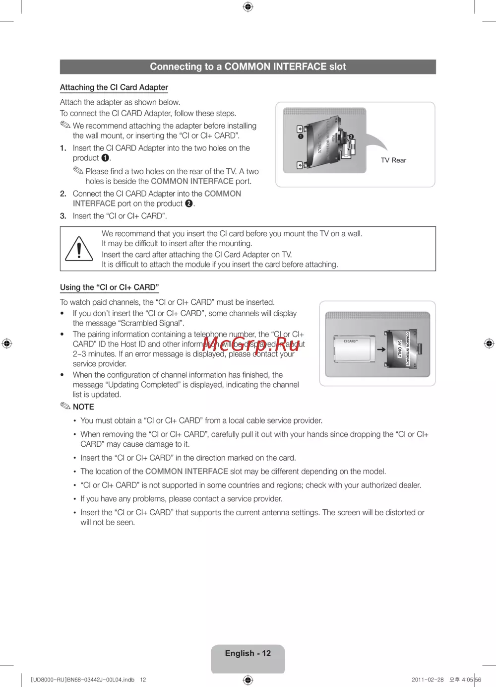 the wall mount, or inserting the “CI or CI+ CARD”.