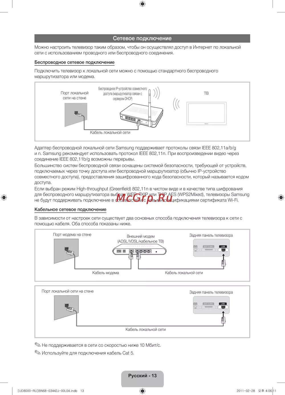 и n. Samsung рекомендует использовать протокол IEEE 802,11n. При воспроизведении видео через