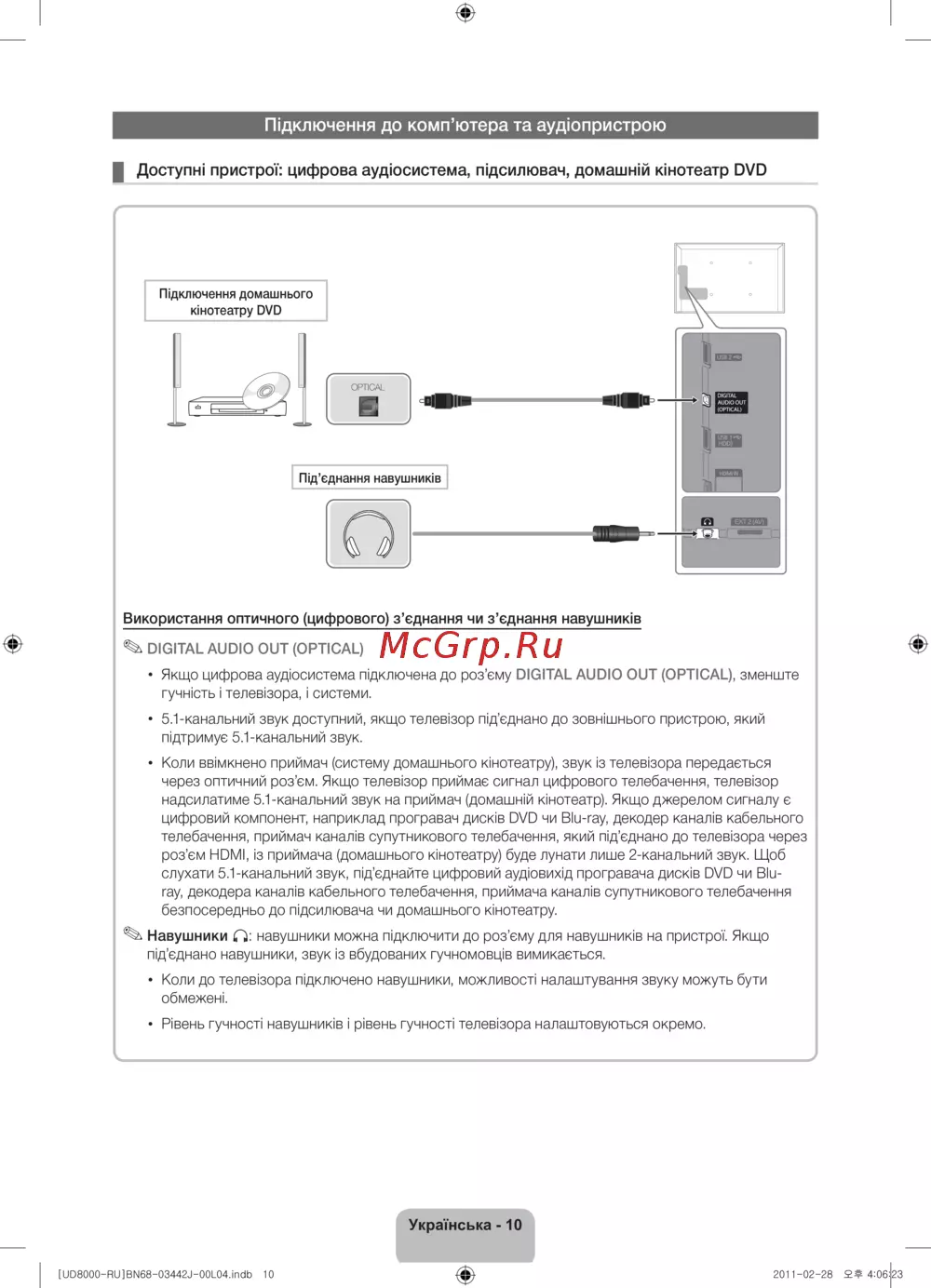 Використання оптичного (цифрового) з’єднання чи з’єднання навушників