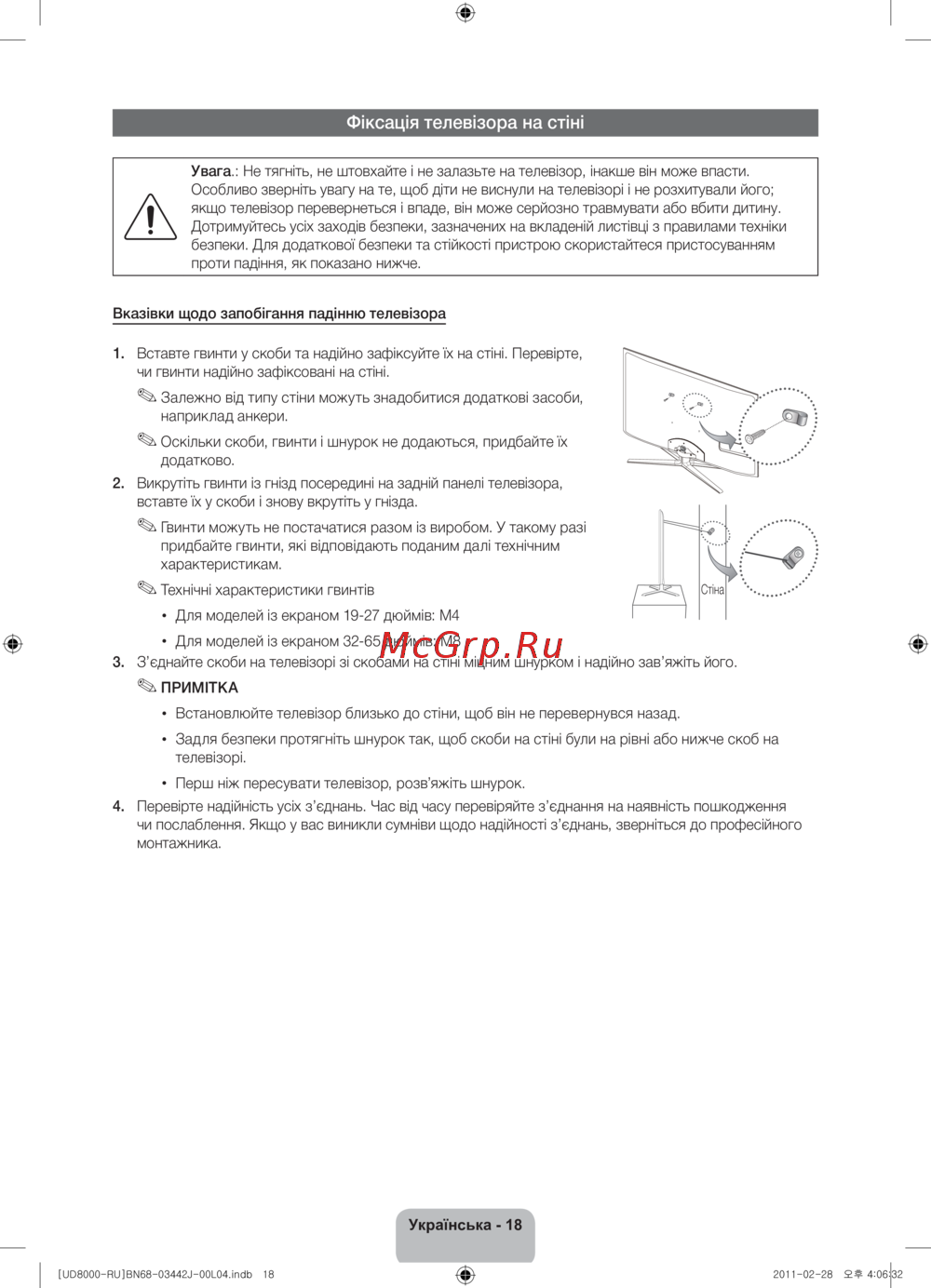 Samsung UE40D8000YS [60/84] Фіксація телевізора на стіні