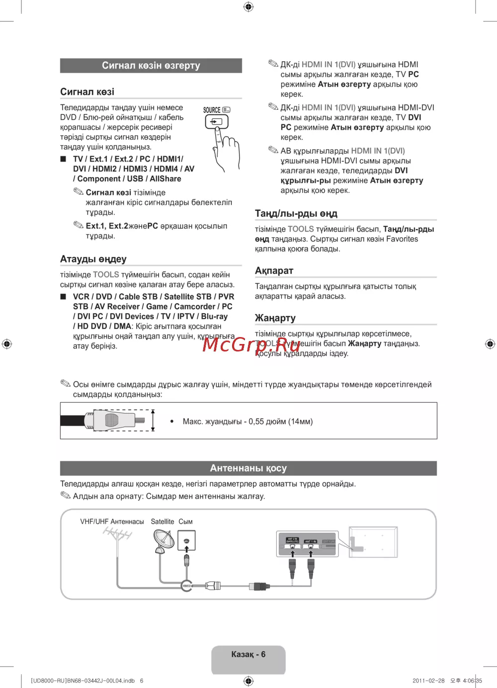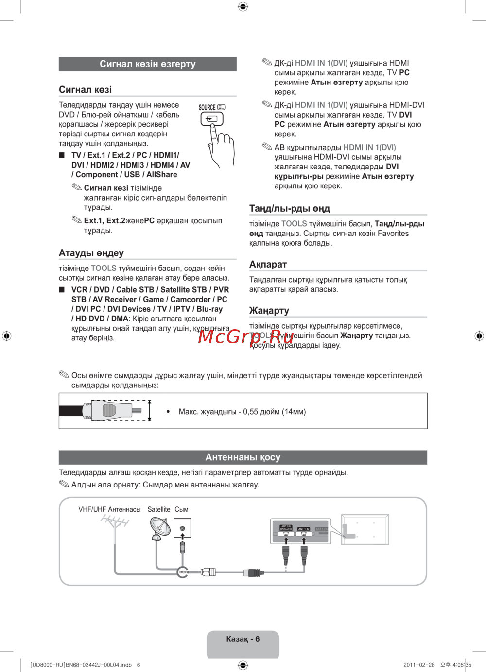 - Теледидар бейнебеті ағымдық сигнал көзі бейнебетін көрсетеді p.76