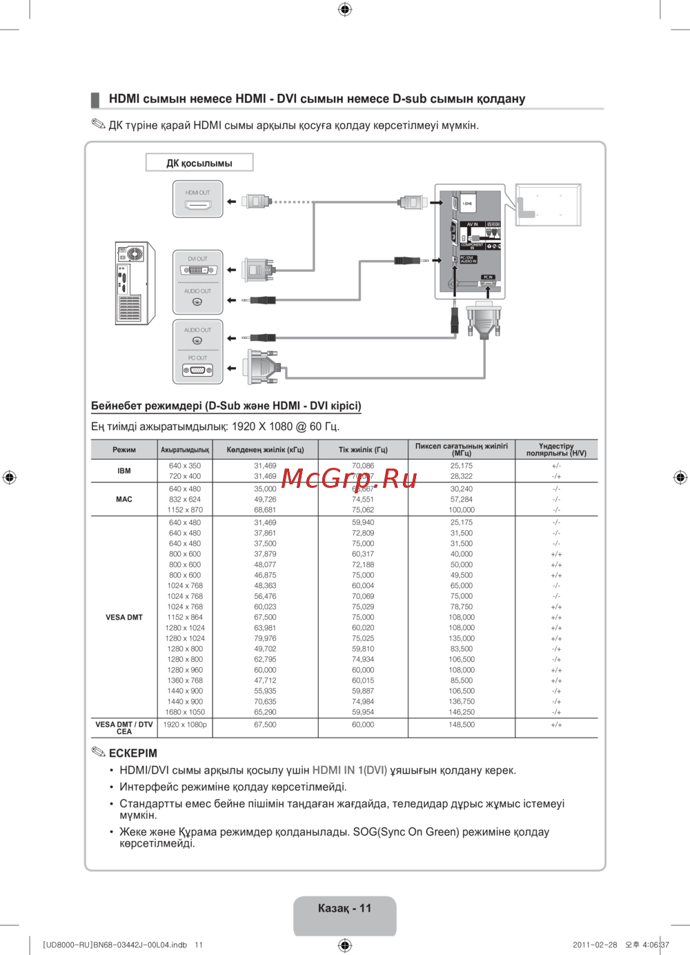- Hdmi сымын немесе hdmi dvi сымын немесе d sub сымын қолдану p.73