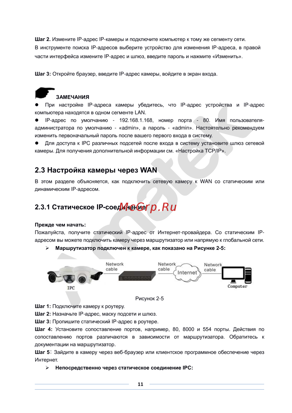 адресом вы можете подключить камеру через маршрутизатор или напрямую к глобальной сети.