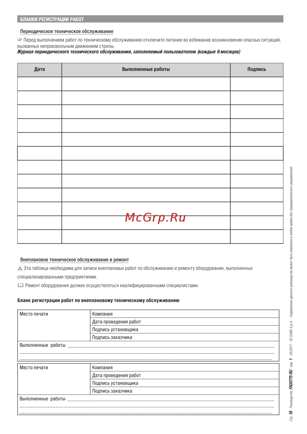 - 05/2017 - © CAME S.p.A. - Содержание данного руководства может быть изменено в любое время без предварительного уведомления.