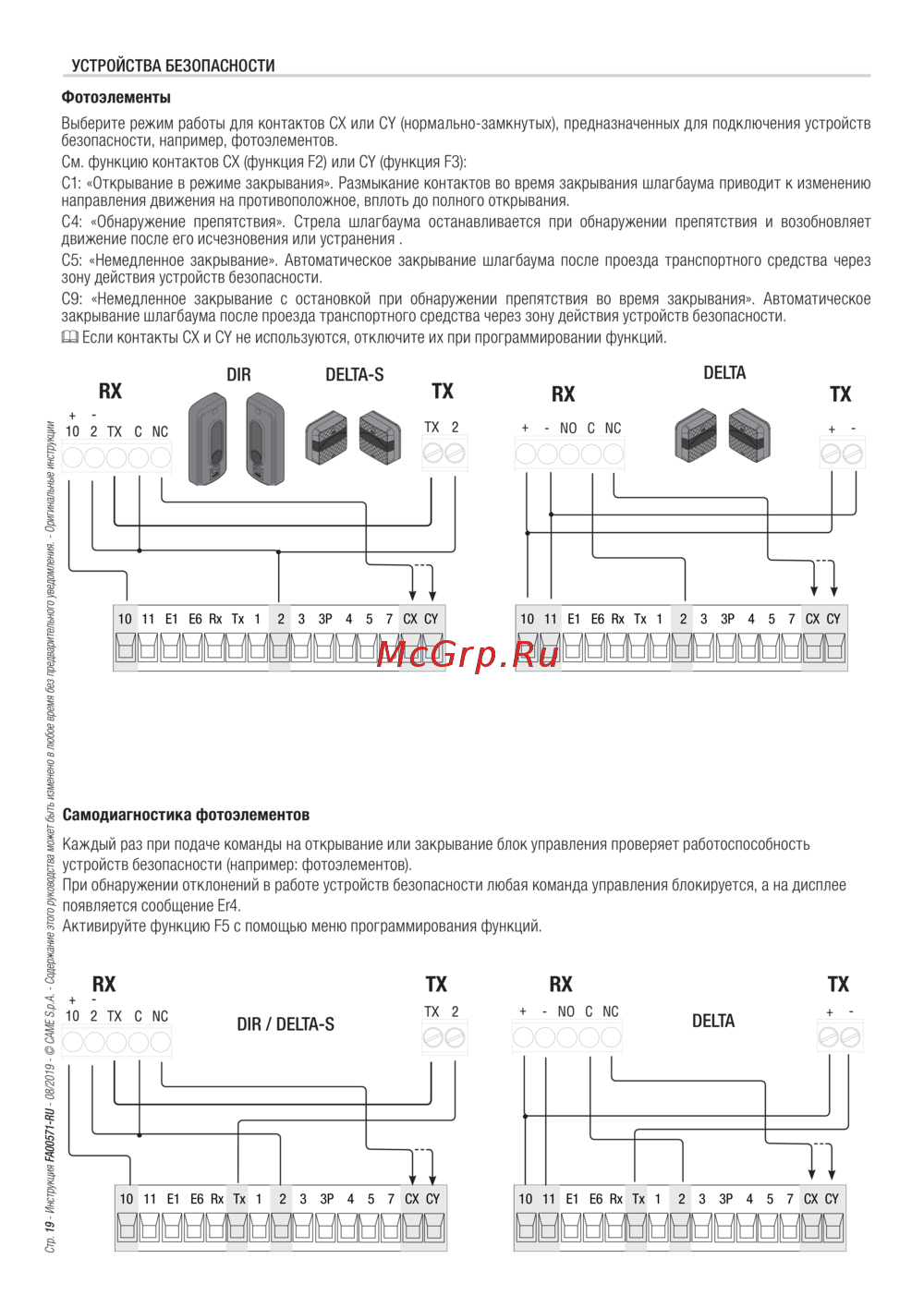 Стр. 19 - Инструкция FA00571-RU - 08/2019 - © CAME S.p.A. - Содержание этого руководства может быть изменено в любое время без предварительного уведомления. - Перевод оригинальных инструкций