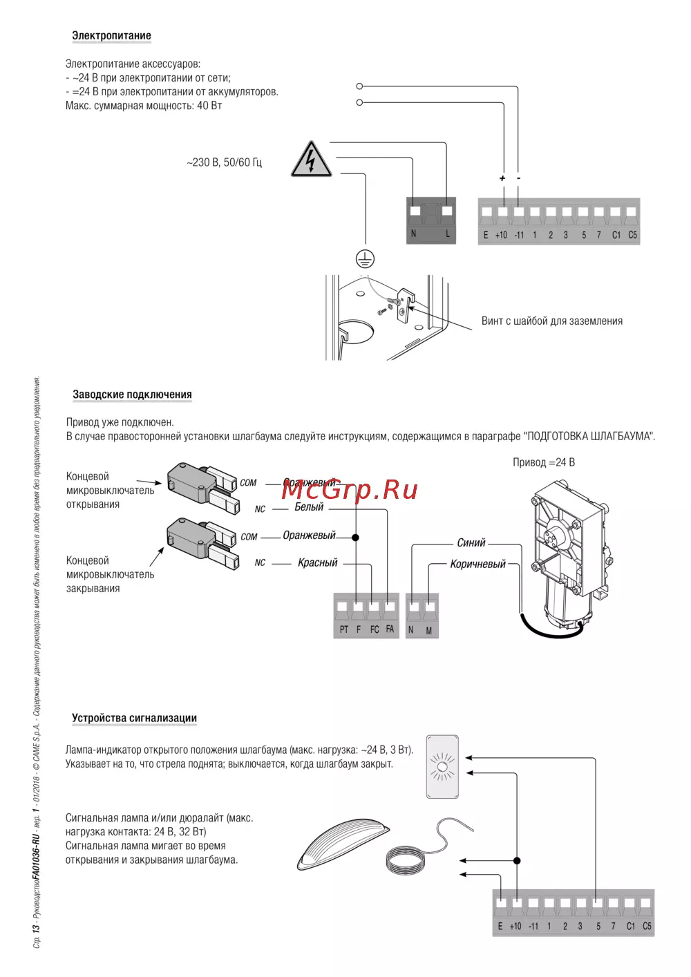Стр. 13 - РуководствоFA01036-RU - вер. 1 - 01/2018 - © CAME S.p.A. - Содержание данного руководства может быть изменено в любое время без предварительного уведомления.