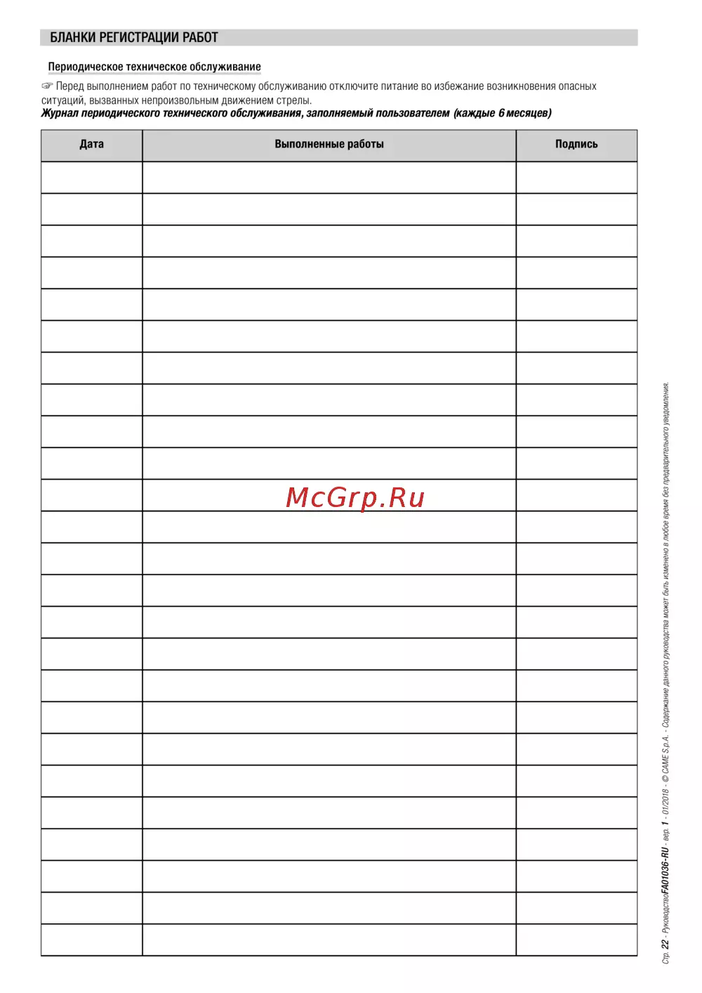 ![Came G2080Z [22/24] Бланки регистрации работ](/views2/1777613/page22/bg16.png)