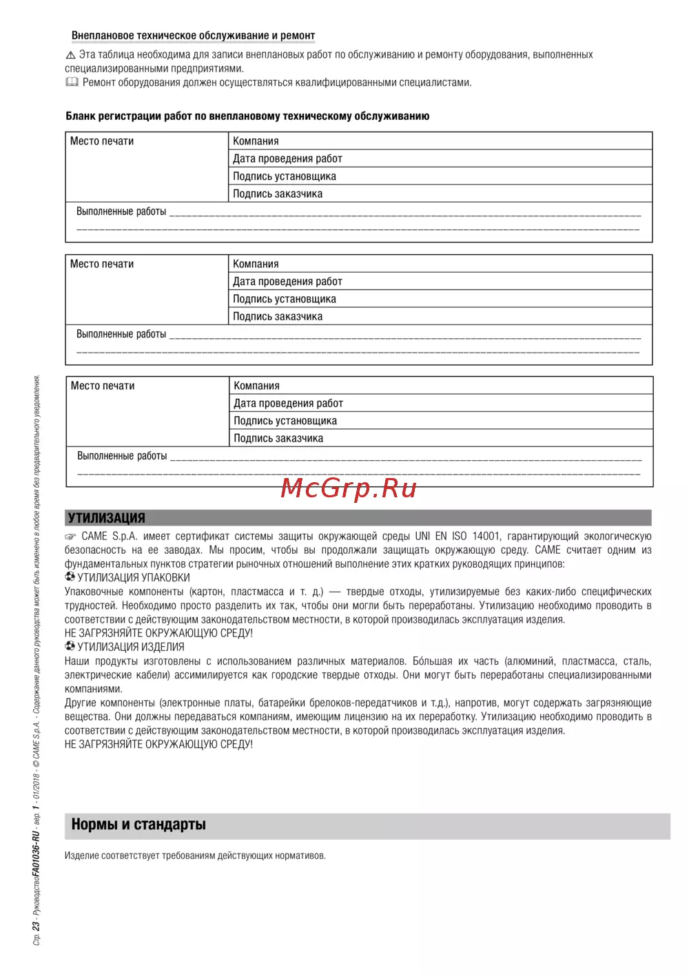 ![Came G2080Z [23/24] Нормы и стандарты](/views2/1777613/page23/bg17.png)