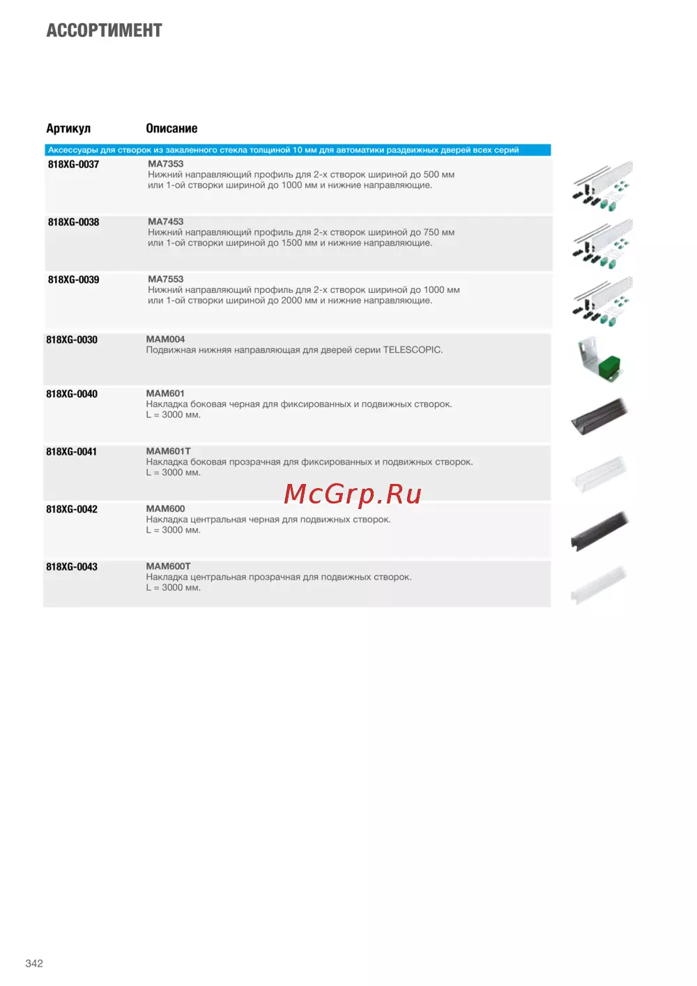 Аксессуары для створок из закаленного стекла толщиной 10мм для автоматики раздвижных дверей всех серий
