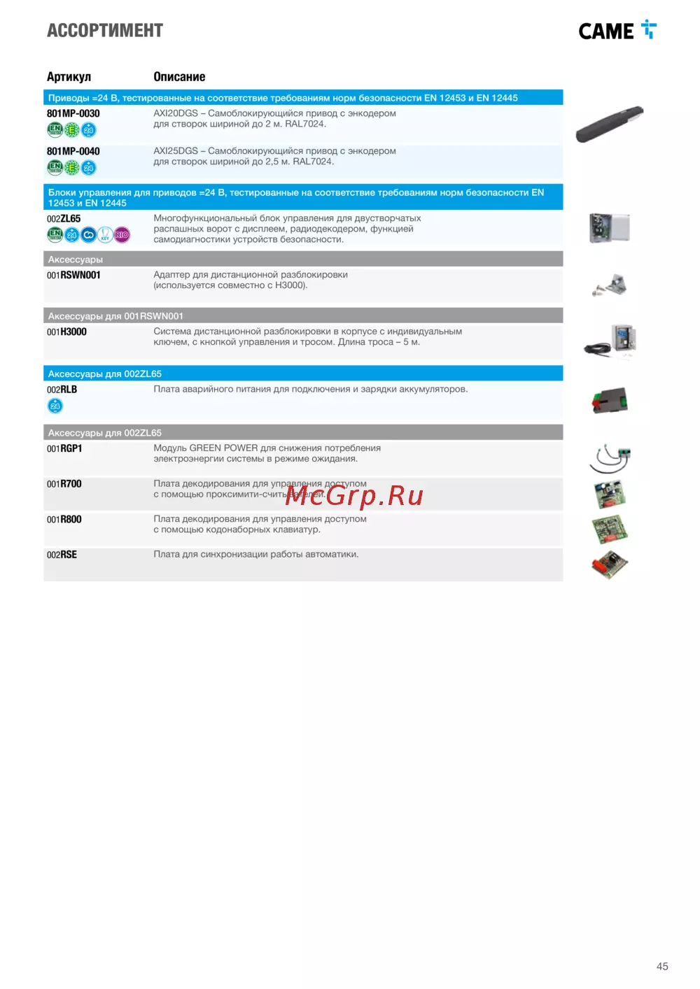 Came GGT80AGS — ассортимент приводов и блоков управления для ворот [46/362]