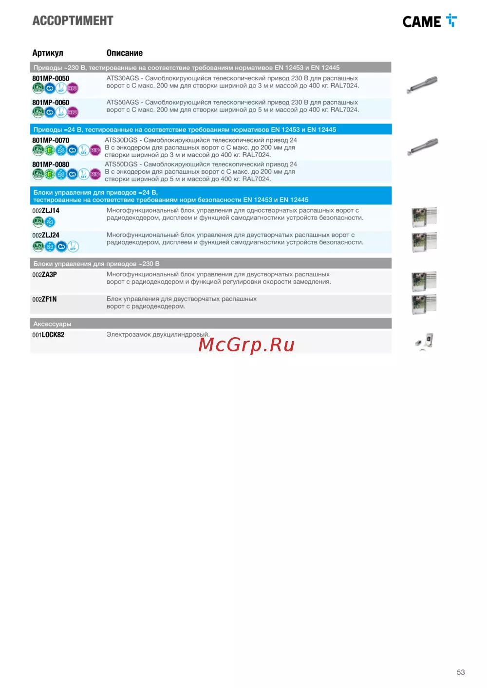 ![Came SLIDING GATE LIGHT 001SGL01-DBL [54/362] Ассортимент](/views2/1777132/page54/bg36.png)