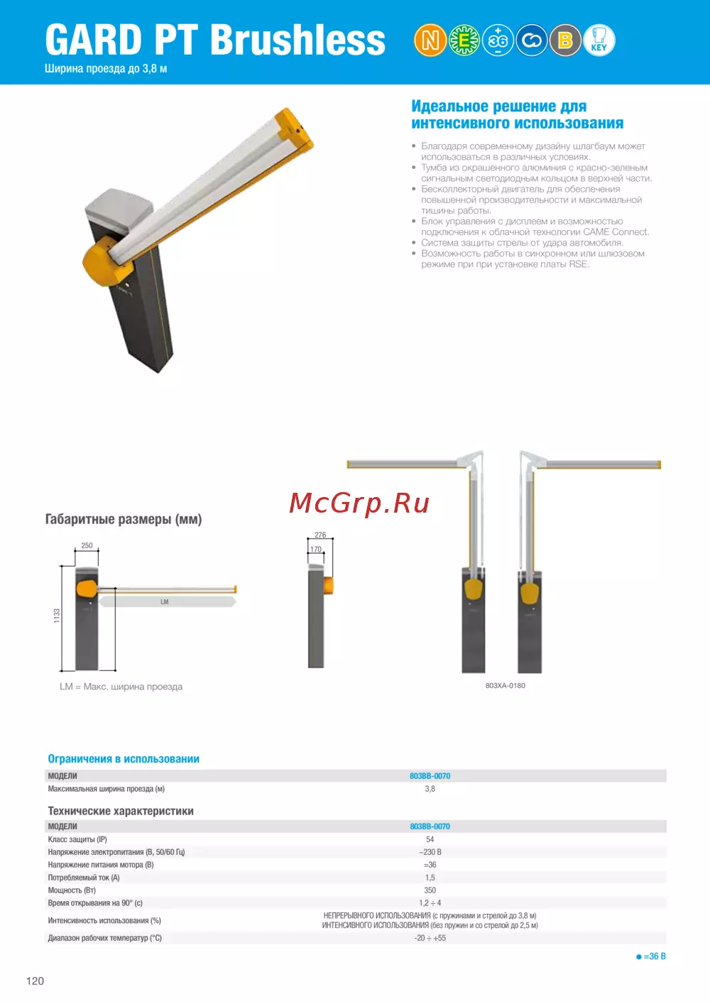 Came GPX40MGS — технические характеристики и возможности шлагбаумов для проезда [121/362]
