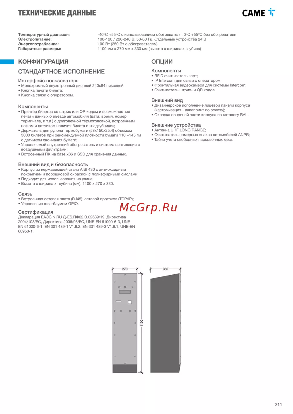 • Высота x ширина x глубина (мм): 1100 x 270 x 330.