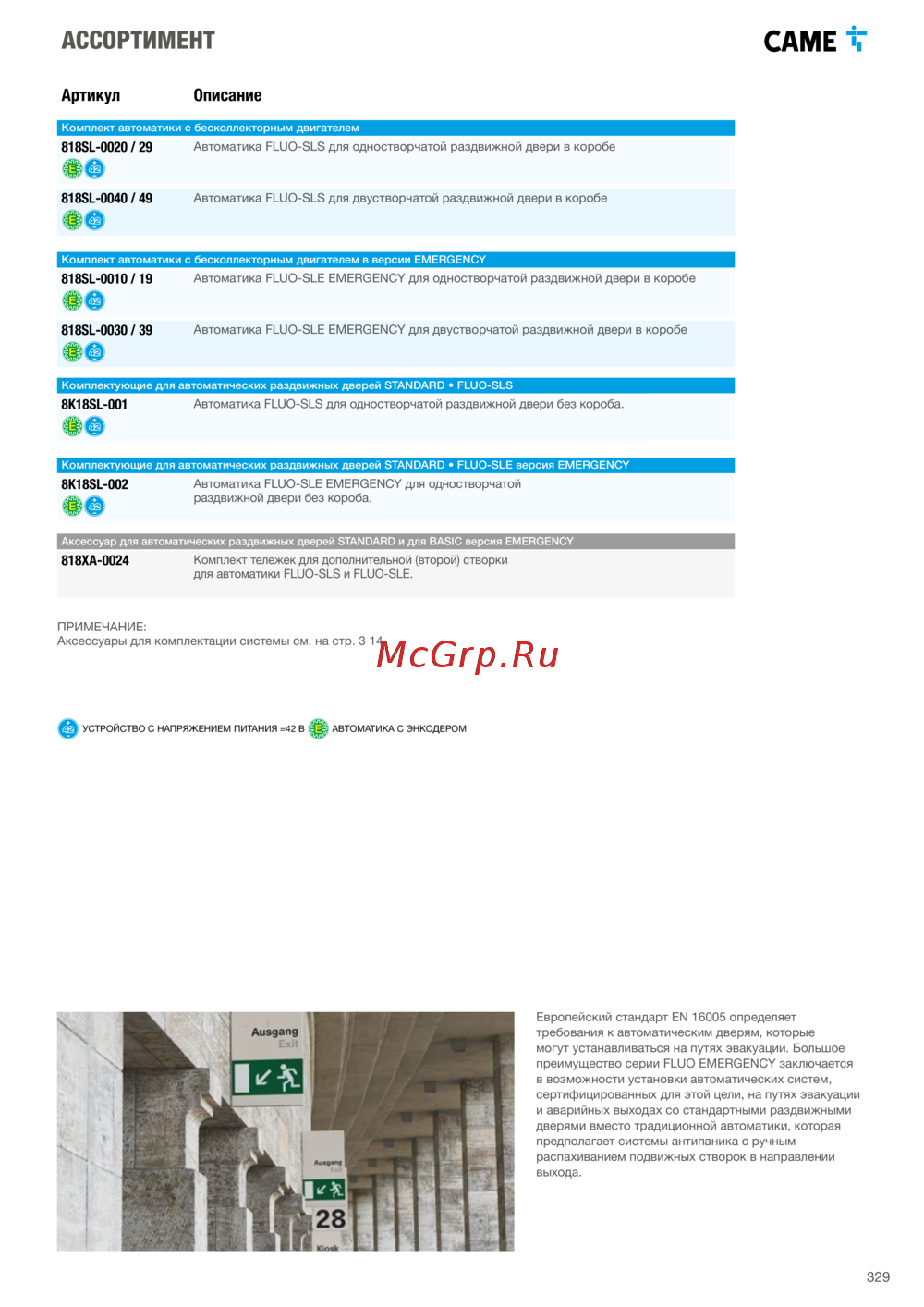 Came GPX40MGS — комплекты автоматики для раздвижных дверей: EMERGENCY и стандартные решения [330/362]