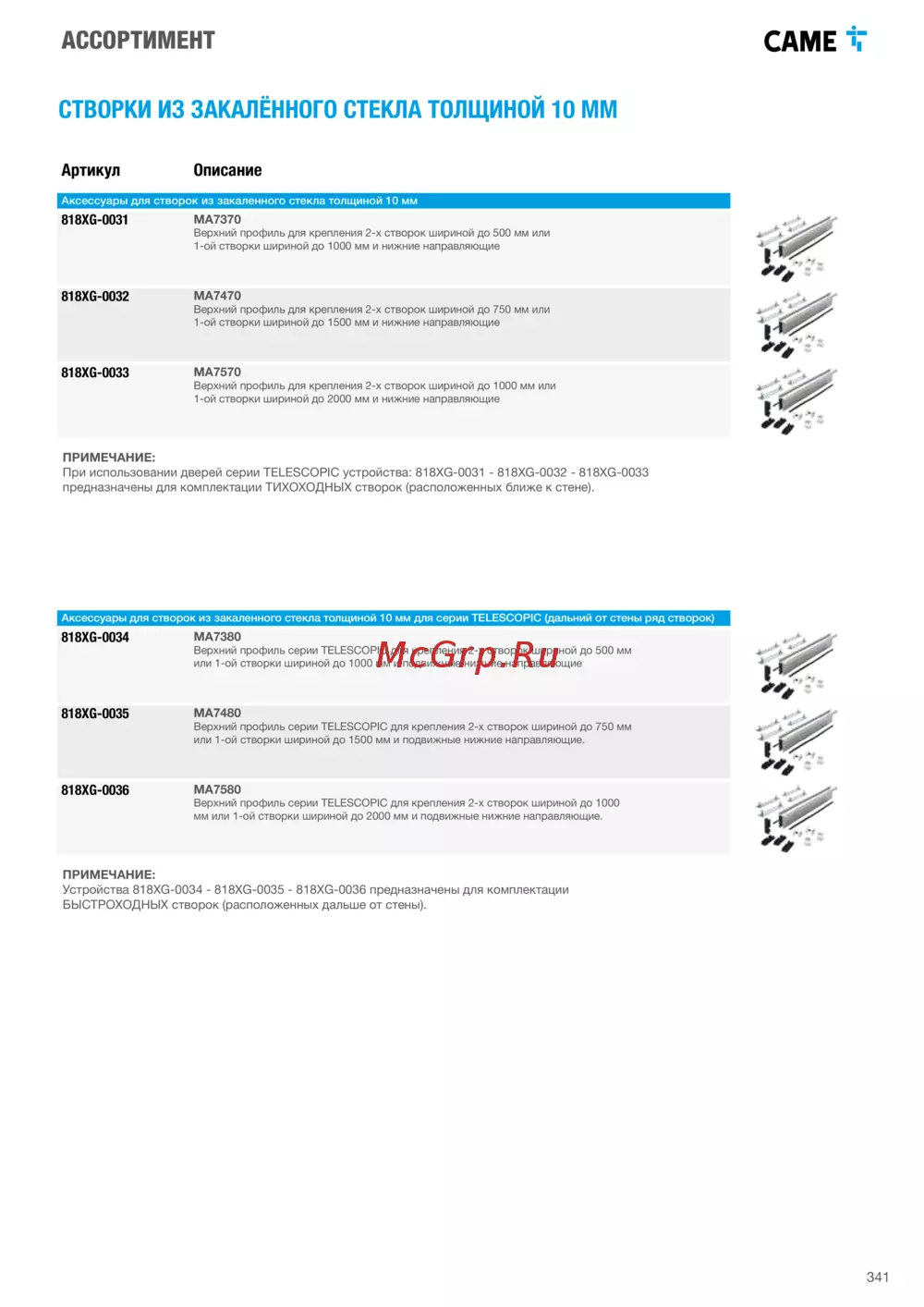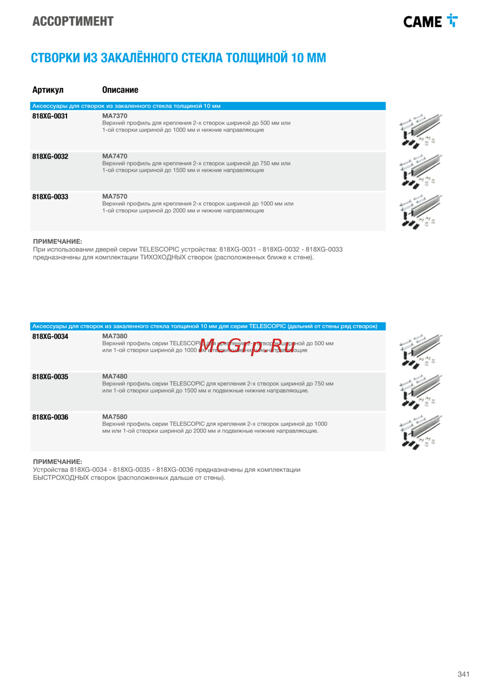 При использовании дверей серии TELESCOPIC устройства: 818XG-0031 - 818XG-0032 - 818XG-0033