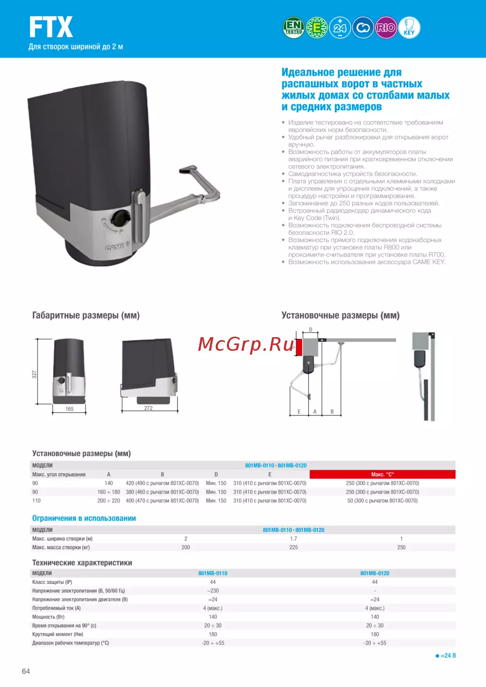 Came GPX40MGS — эффективные решения для распашных ворот в частных домах [65/362]