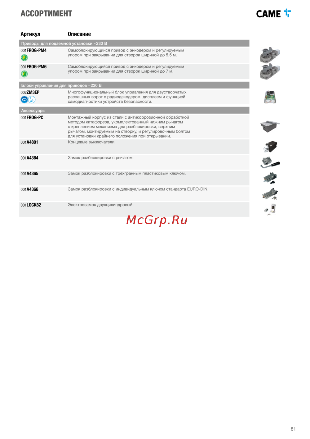 ![Came SWING GATE SWG90 001SWG90M [82/362] Ассортимент](/views2/1777132/page82/bg52.png)
