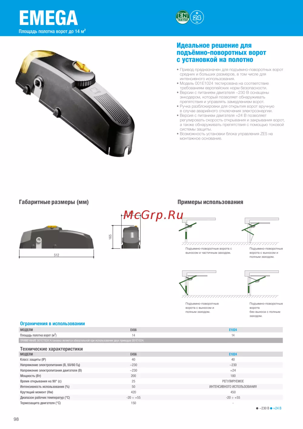 Came GPX40MGS — технические характеристики и применение приводов для ворот [99/362]