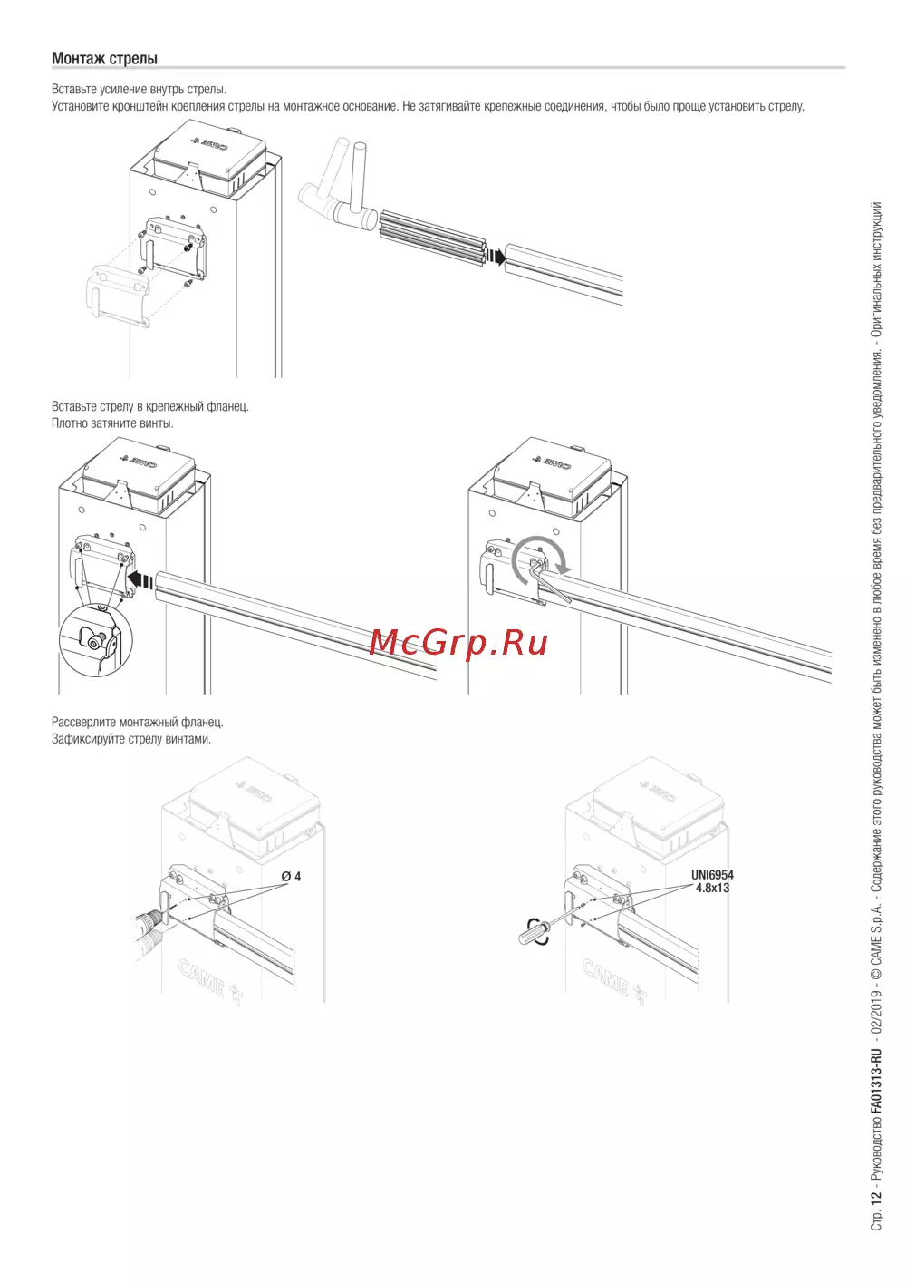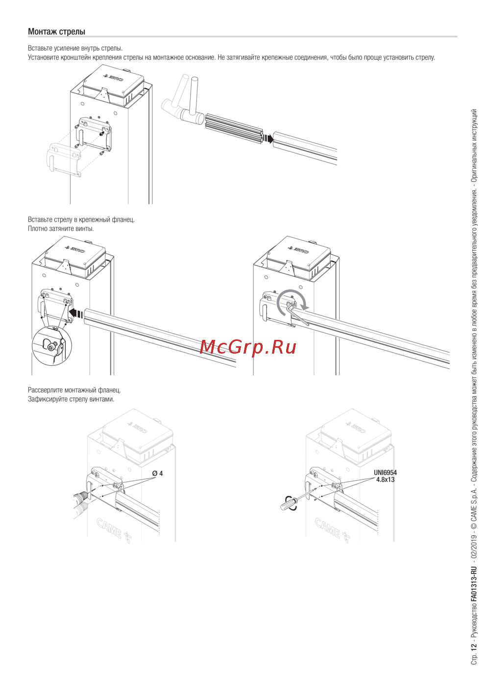 Came GPX40MGP — инструкция по монтажу стрелы: пошаговое руководство [12/40]