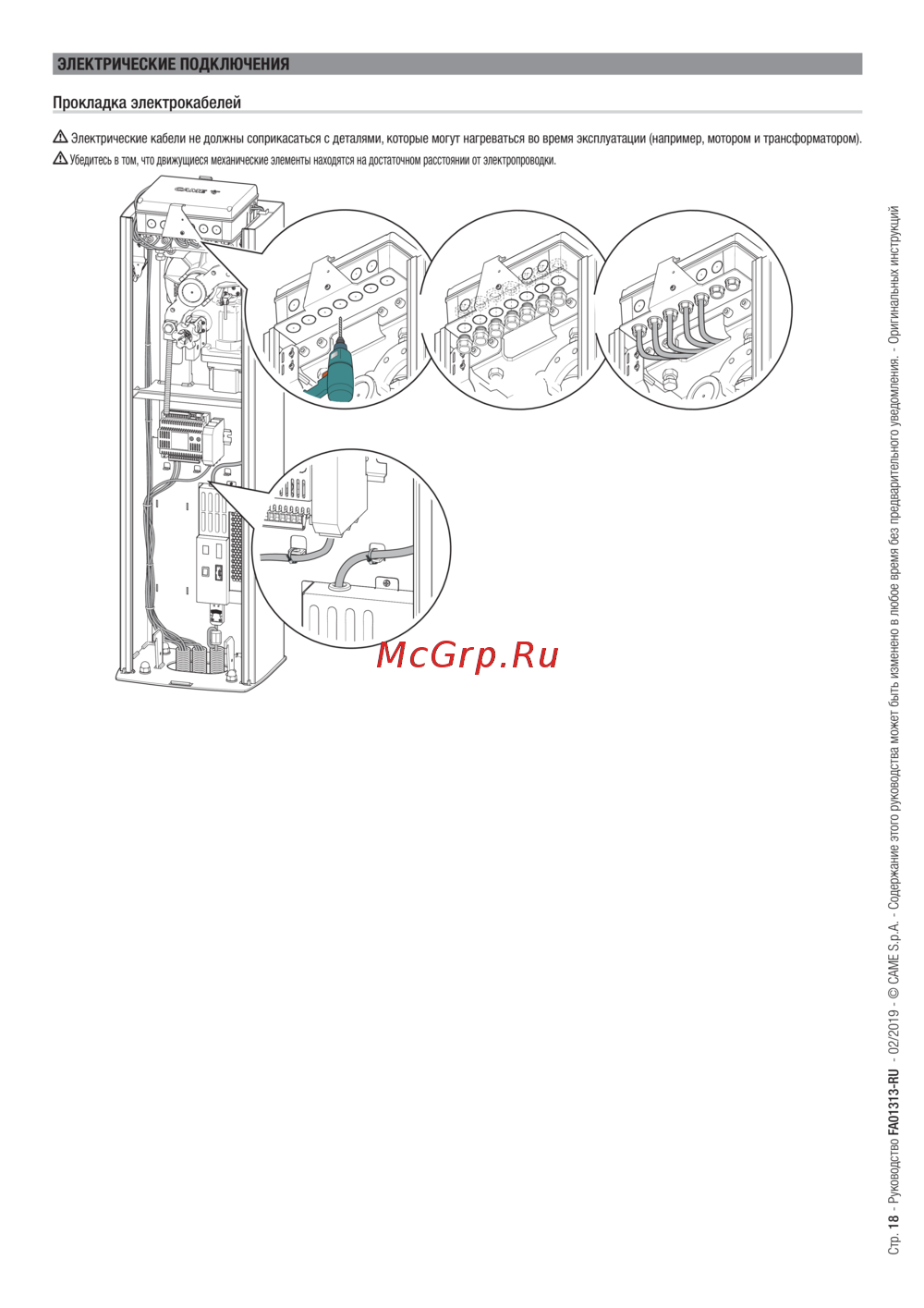 Стр. 18 - Руководство FA01313-RU - 02/2019 - © CAME S.p.A. - Содержание этого руководства может быть изменено в любое время без предварительного уведомления. - Oригинальных инструкций