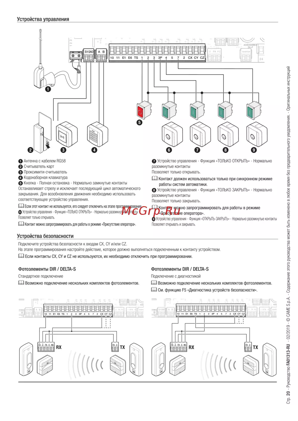 Came GPX40MGP — руководство по устройствам управления и безопасности [20/40]