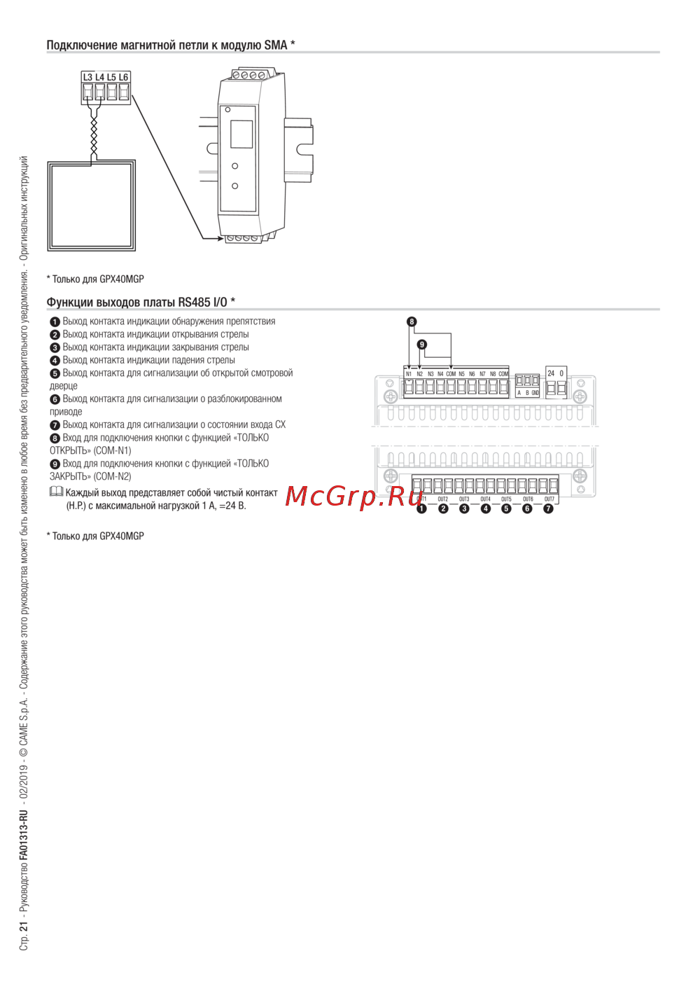Came GPX40MGP — инструкция по подключению магнитной петли к модулю управления [21/40]