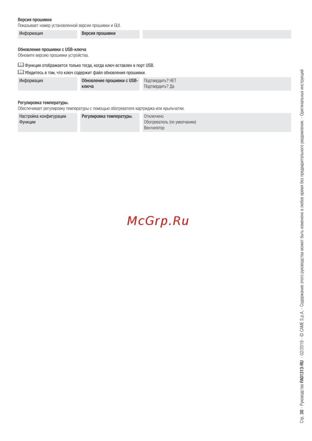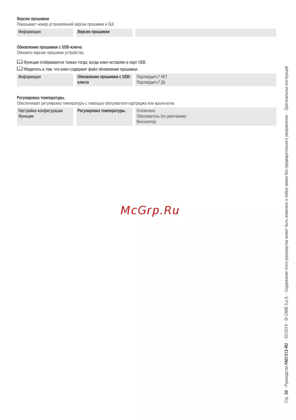 Стр. 30 - Руководство FA01313-RU - 02/2019 - © CAME S.p.A. - Содержание этого руководства может быть изменено в любое время без предварительного уведомления. - Oригинальных инструкций