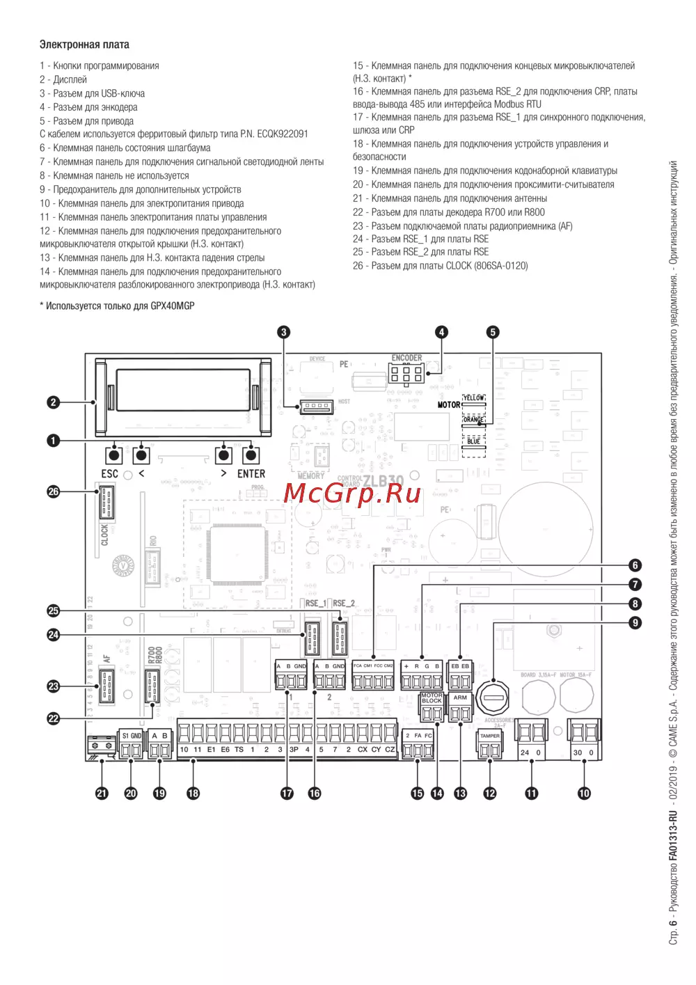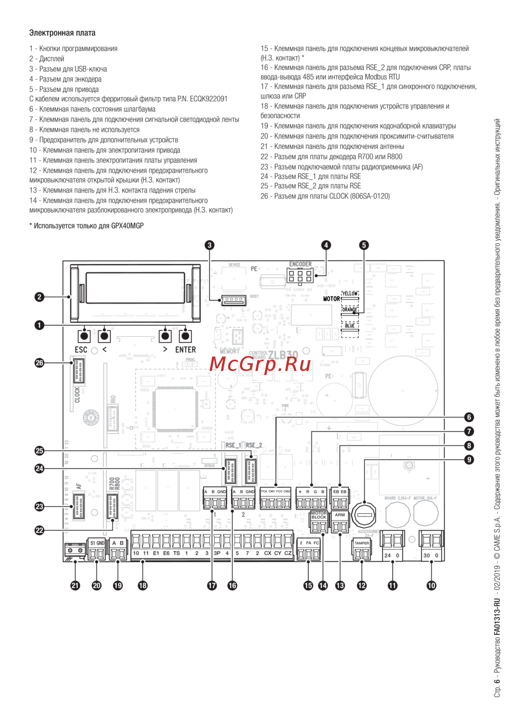 ![Came GPX40MGP [6/40] Электронная плата](/views2/1777534/page6/bg6.png)