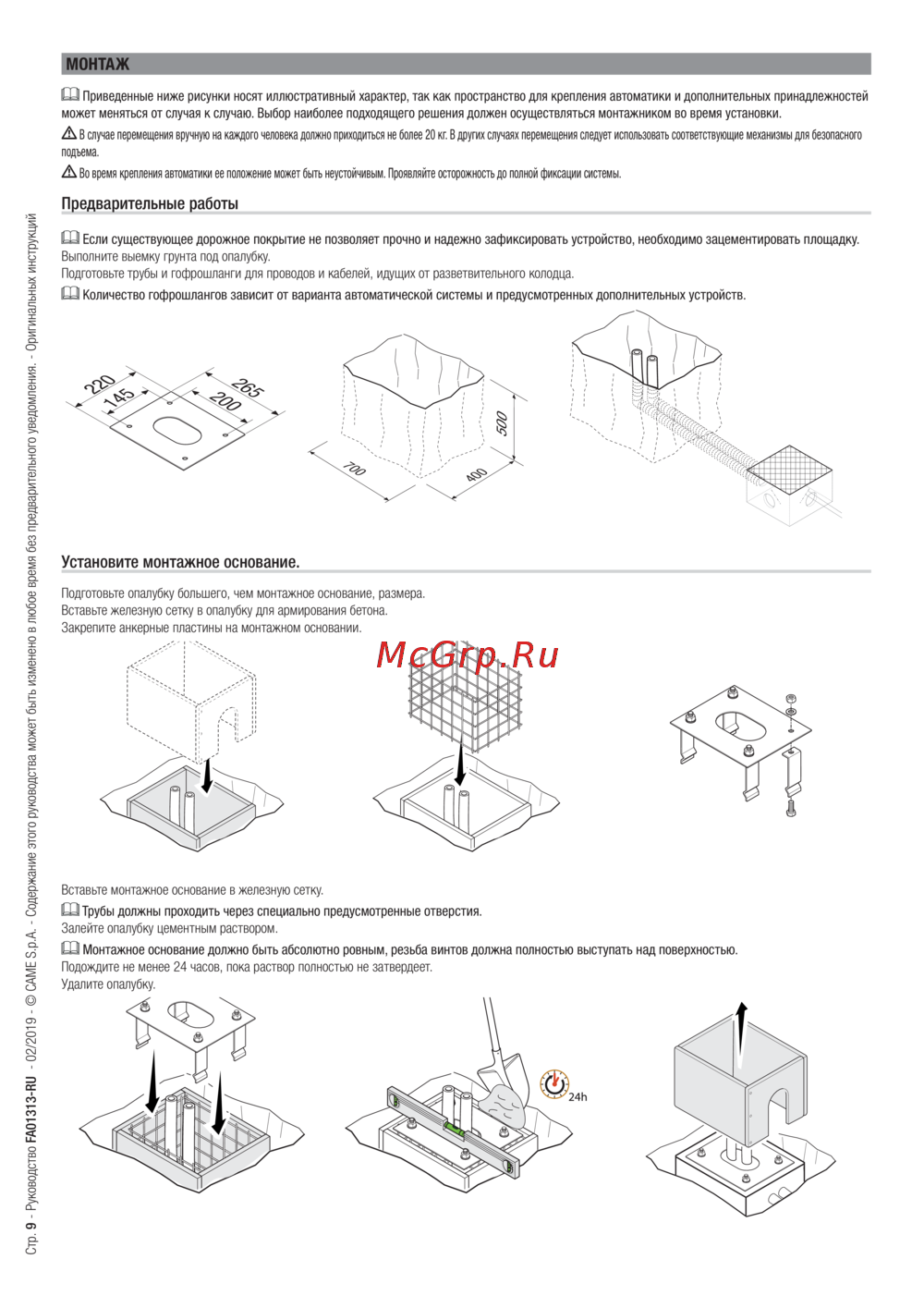 Стр. 9 - Руководство FA01313-RU - 02/2019 - © CAME S.p.A. - Содержание этого руководства может быть изменено в любое время без предварительного уведомления. - Oригинальных инструкций