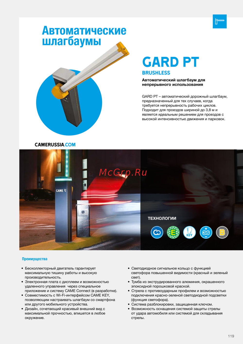 Came GPX40MGP — автоматические шлагбаумы для интенсивного движения и парковок [120/362]