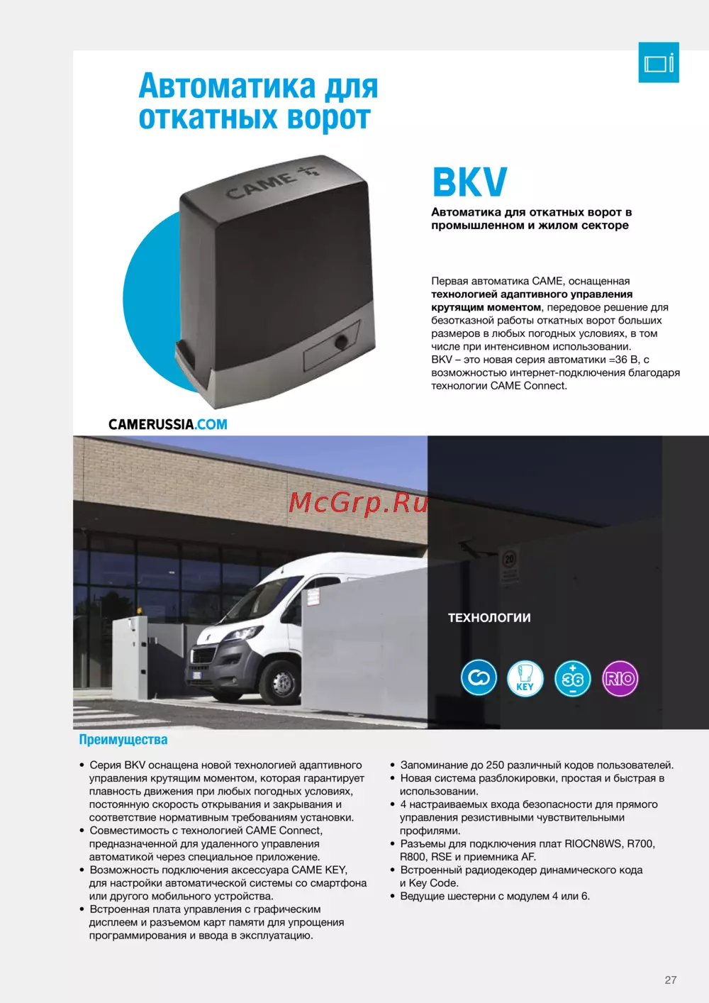 - Автоматика для откатных ворот came делает возможной автоматизацию двухcтворчатых ворот функция ведущий ведомый максимально упрощает монтаж и подключение p.15