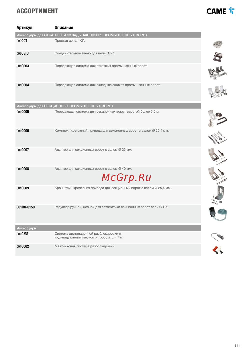 ![Came SLIDING GATE SG90 001SG90S-DBL [112/362] Ассортимент](/views2/1777132/page112/bg70.png)