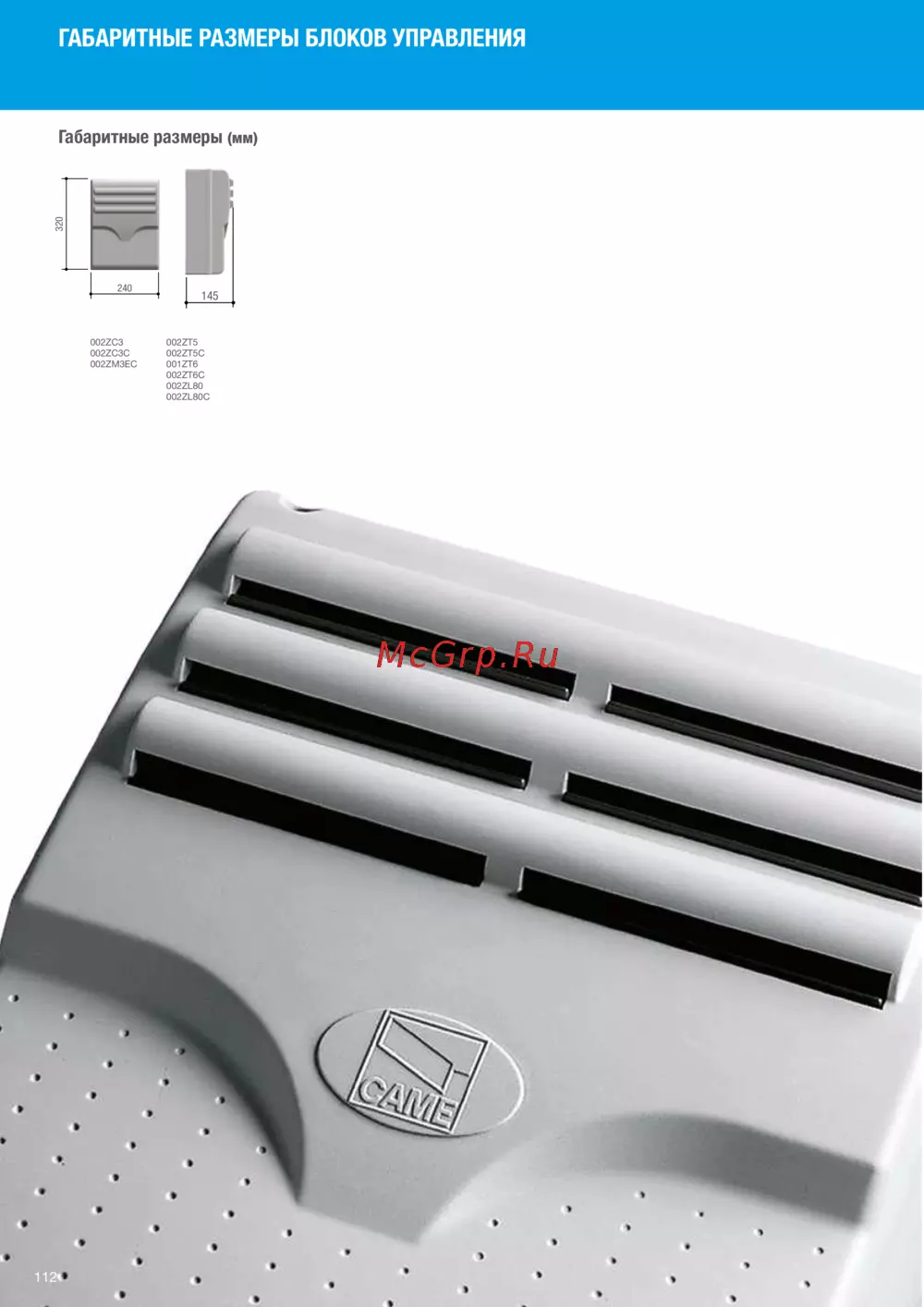 ![Came SLIDING GATE GL90 001SGL90 [113/362] Габаритные размеры блоков управления](/views2/1777132/page113/bg71.png)