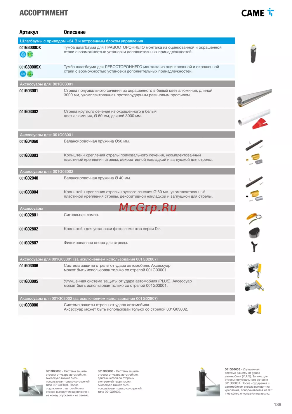 Came G12000K — шлагбаумы с приводом и аксессуарами: системы защиты, кронштейны, пружины [140/362]