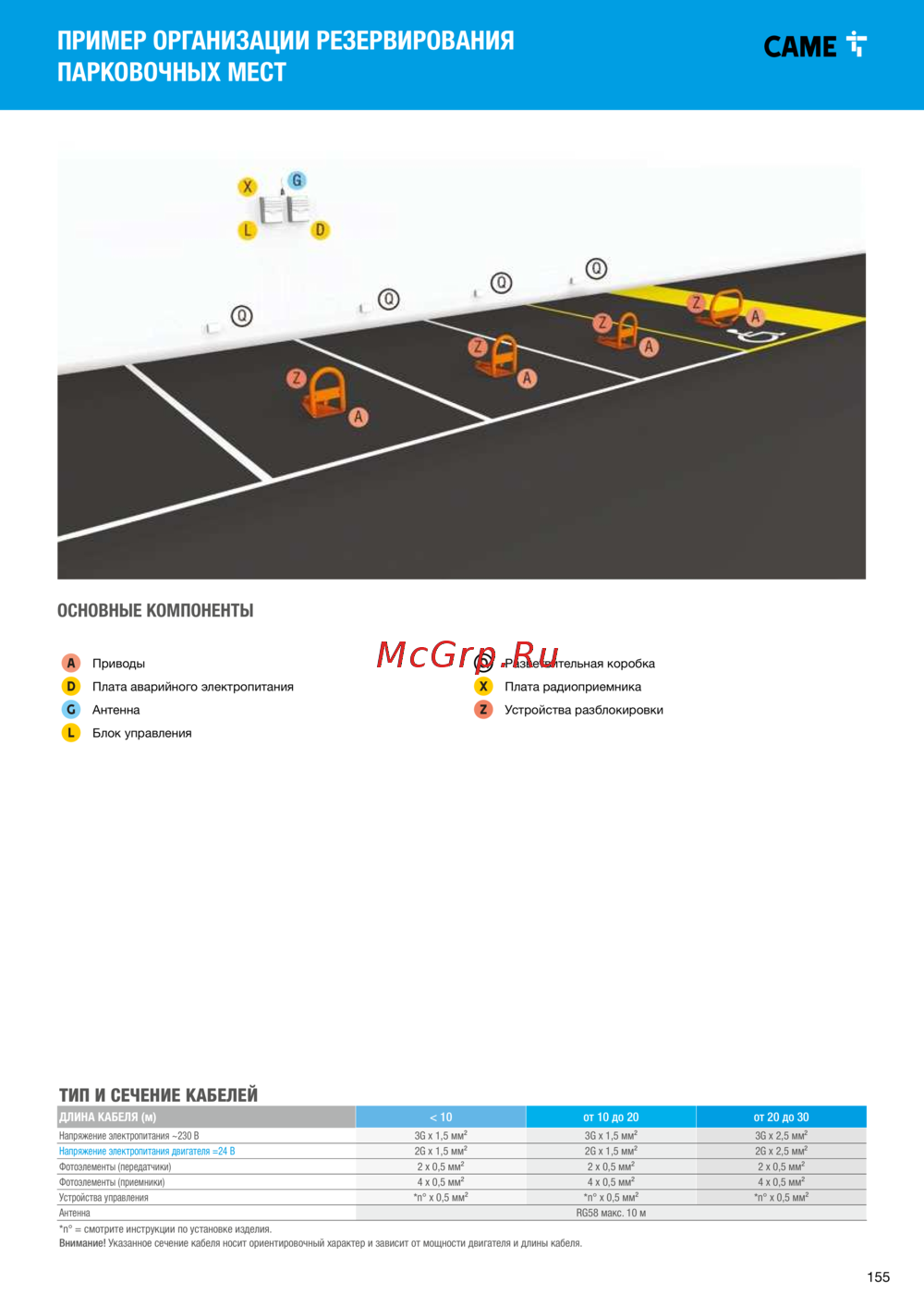 - Тип и сечение кабелей p.16